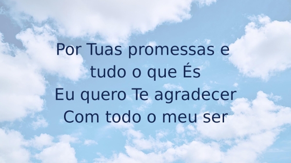 - Por Tuas promessas e tudo o que ÉsEu quero Te agradecerCom todo o meu ser