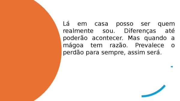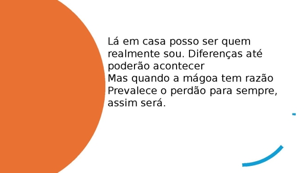 - Lá em casa posso ser quem realmente sou. Diferenças até poderão acontecerMas quando a mágoa tem razãoPrevalece o perdão para sempre, assim será.