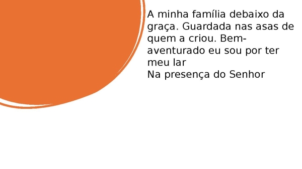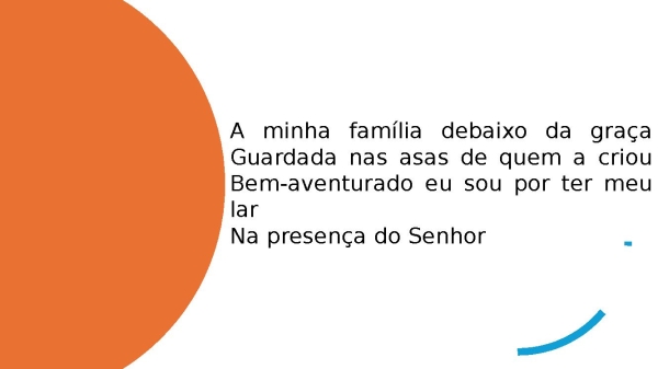 - A minha família debaixo da graçaGuardada nas asas de quem a criouBem-aventurado eu sou por ter meu larNa presença do Senhor