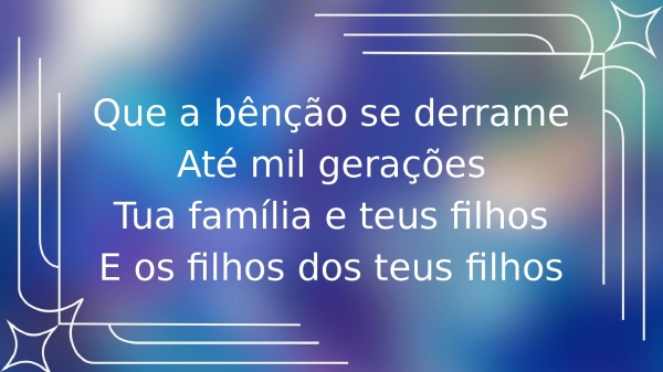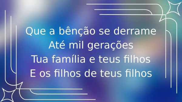 - Que a bênção se derrameAté mil geraçõesTua família e teus filhosE os filhos dos teus filhos