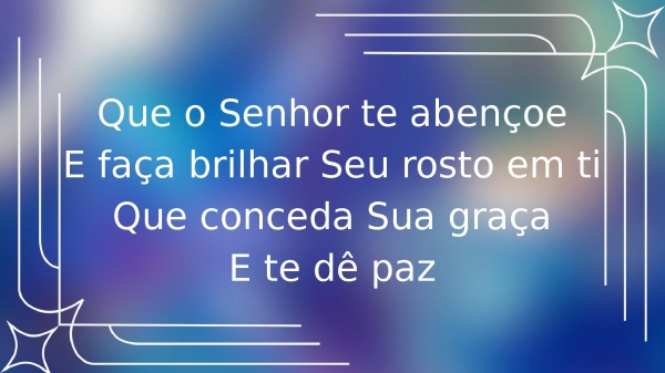 - Que o Senhor te abençoeE faça brilhar Seu rosto em tiQue conceda Sua graçaE te dê paz