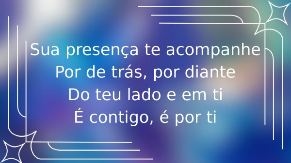 - Sua presença te acompanhePor detrás e por dianteDo teu lado e em tiÉ contigo, é por ti