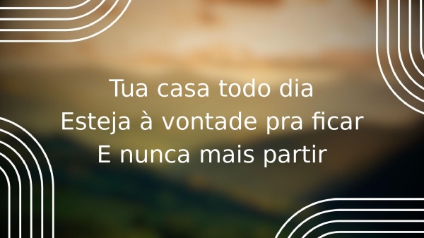 - Tua casa todo diaEsteja à vontade pra ficarE nunca mais partir