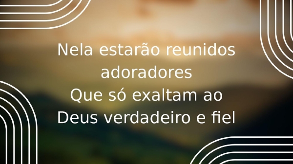 - Nela estarão reunidos adoradoresQue só exaltam ao Deus verdadeiro e fiel