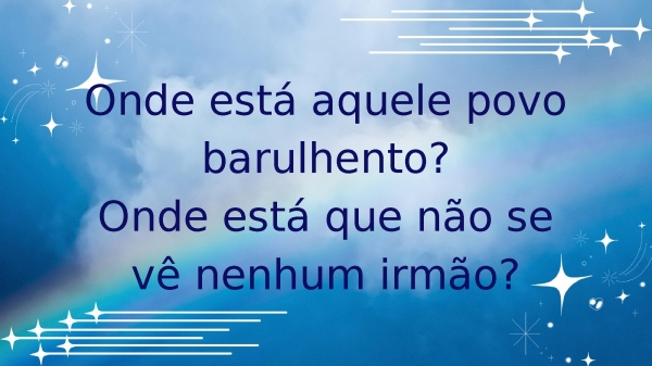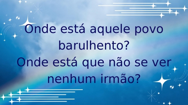 - Onde está aquele povo barulhento?Onde está que não se vê nenhum irmão?
