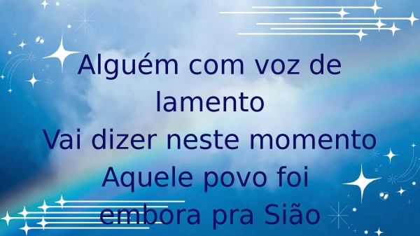 - Alguém com voz de lamentoVai dizer neste momentoAquele povo foi embora pra Sião