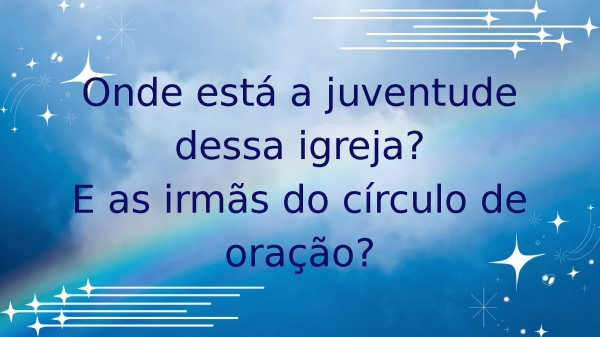 - Onde está a juventude dessa igreja?E as irmãs do círculo de oração?