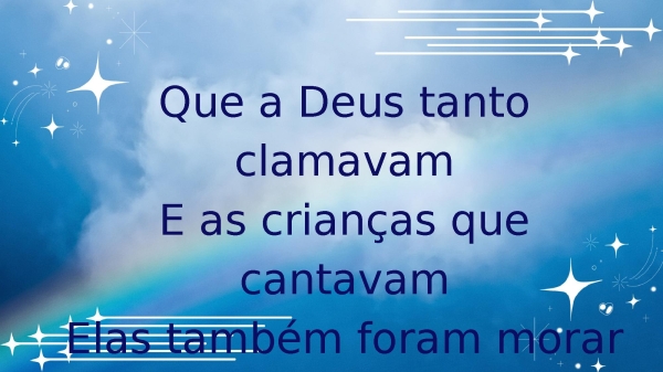 - Que a Deus tanto clamavamE as crianças que cantavamElas também foram morar em Sião