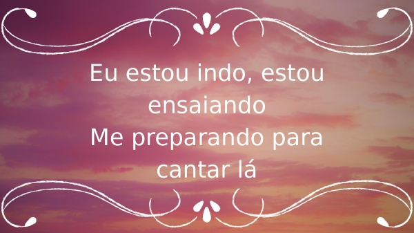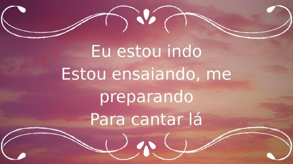 - Eu estou indoEstou ensaiando, me preparandoPara cantar lá