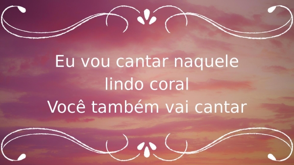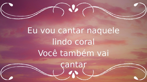 - Eu vou cantar naquele lindo coralVocê também vai cantar