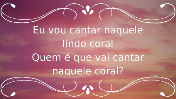 - Eu vou cantar naquele lindo coralQuem é que vai cantar naquele coral?