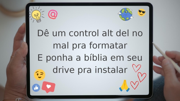 - Dê um control alt del no mal pra formatarE ponha a bíblia em seu drive pra instalar