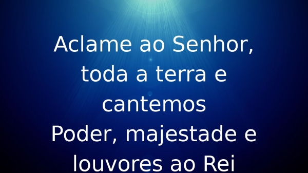 - Aclame ao Senhor, toda a terra e cantemosPoder, majestade e louvores ao Rei