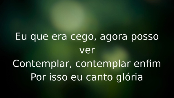 - Eu que era cego, agora posso verContemplar, contemplar enfimPor isso eu canto glória
