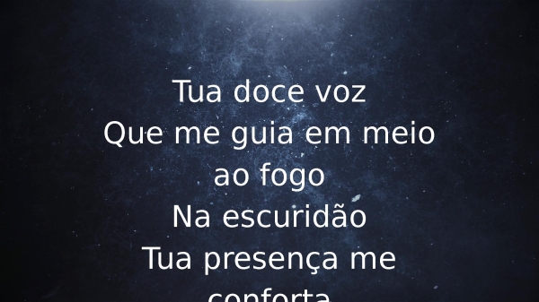 - Tua doce vozQue me guia em meio ao fogoNa escuridãoTua presença me conforta
