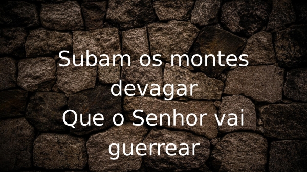 - Subam os montes devagarQue o Senhor vai guerrear