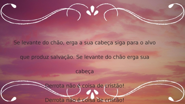 - Se levante do chão, erga a sua cabeça siga para o alvo que produz salvação. Se levante do chão erga sua cabeçaDerrota não é coisa de cristão!Derrota não é coisa de cristão!