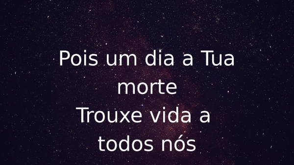 - Pois um dia a Tua morteTrouxe vida a todos nós