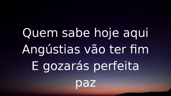- Quem sabe hoje aquiAngústias vão ter fimE gozarás perfeita paz