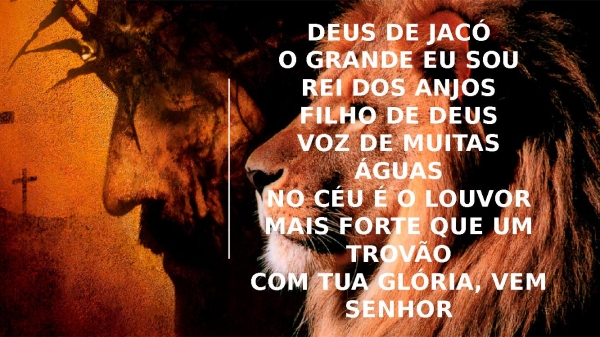 - Deus de JacóO grande Eu SouRei dos anjosFilho de DeusVoz de muitas águasNo céu é o LouvorMais forte que um trovãoCom tua Glória, vem Senhor