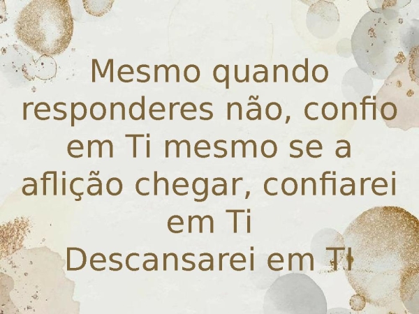 - Mesmo quando responderes não, confio em Ti mesmo se a aflição chegar, confiarei em TiDescansarei em TI