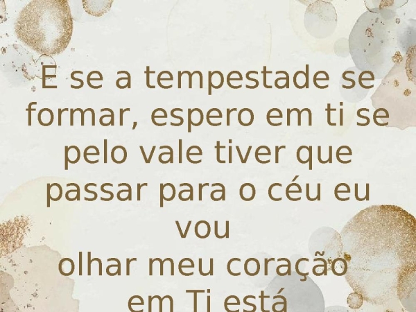 - E se a tempestade se formar, espero em ti se pelo vale tiver que passar para o céu eu vou olhar meu coração em Ti está