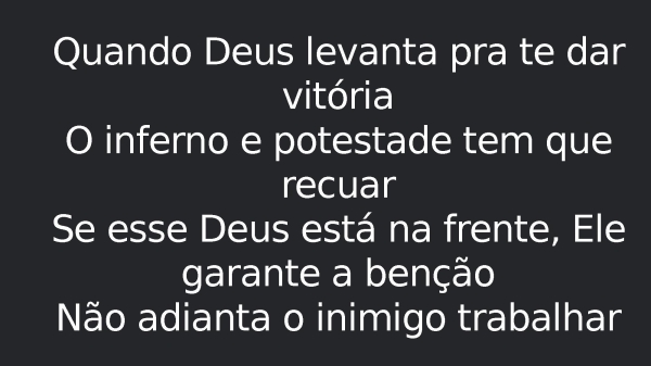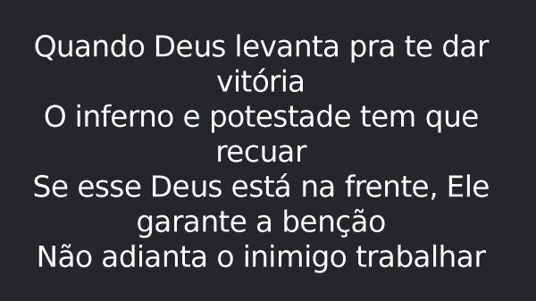 - Quando Deus levanta pra te dar vitóriaO inferno e potestade tem que recuarSe esse Deus está na frente, Ele garante a bençãoNão adianta o inimigo trabalhar