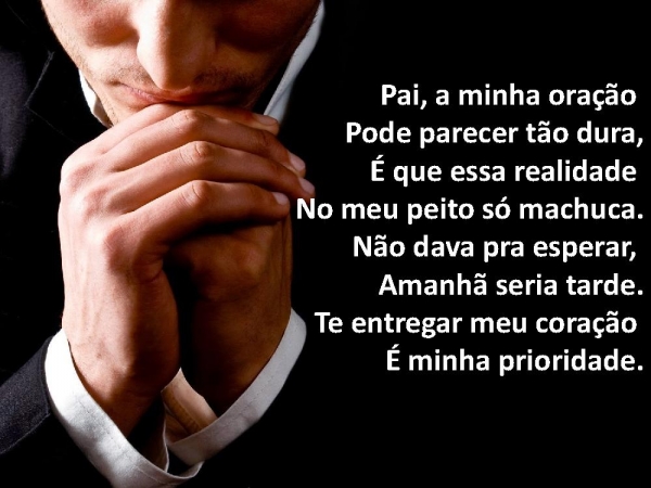 - Pai, a minha oração Pode parecer tão dura,É que essa realidade No meu peito só machuca.Não dava pra esperar, Amanhã seria tarde.Te entregar meu coração É minha prioridade.
