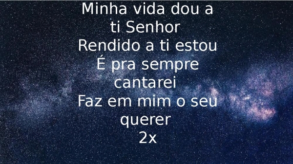 - Minha vida dou a ti Senhor Rendido a ti estou É pra sempre cantarei Faz em mim o seu querer 2x