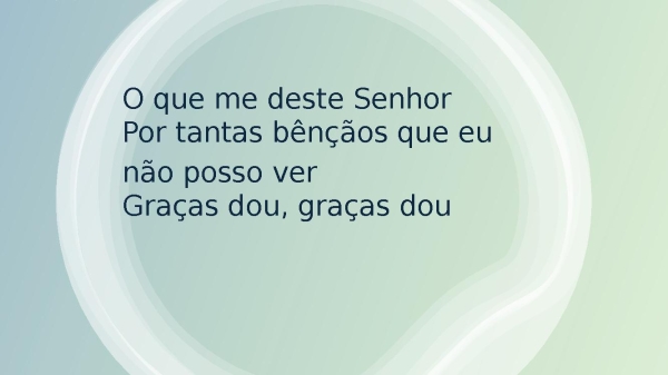 - O que me deste SenhorPor tantas bênçãos que eu não posso verGraças dou, graças dou