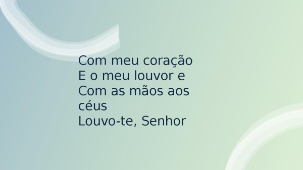 - Com meu coraçãoE o meu louvor eCom as mãos aos céusLouvo-te, Senhor