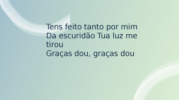 - Tens feito tanto por mimDa escuridão Tua luz me tirouGraças dou, graças dou