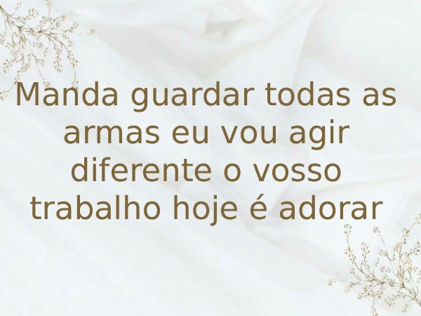 - Manda guardar todas as armas eu vou agir diferente o vosso trabalho hoje é adorar