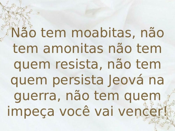 - Não tem moabitas, não tem amonitas não tem quem resista, não tem quem persista Jeová na guerra, não tem quem impeça você vai vencer!