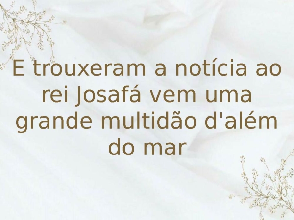 - E trouxeram a notícia ao rei Josafá vem uma grande multidão d'além do mar