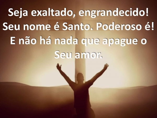 - Seja exaltado, engrandecido!Seu nome é Santo. Poderoso é!E não há nada que apague o Seu amor.