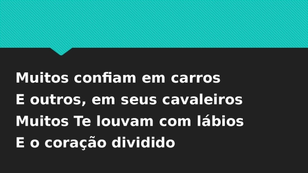 - Muitos confiam em carrosE outros, em seus cavaleirosMuitos Te louvam com lábiosE o coração dividido