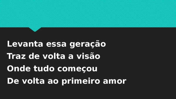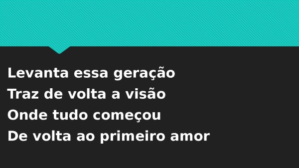 - Levanta essa geraçãoTraz de volta a visãoOnde tudo começouDe volta ao primeiro amor