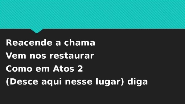 - Reacende a chamaVem nos restaurarComo em Atos 2(Desce aqui nesse lugar) diga