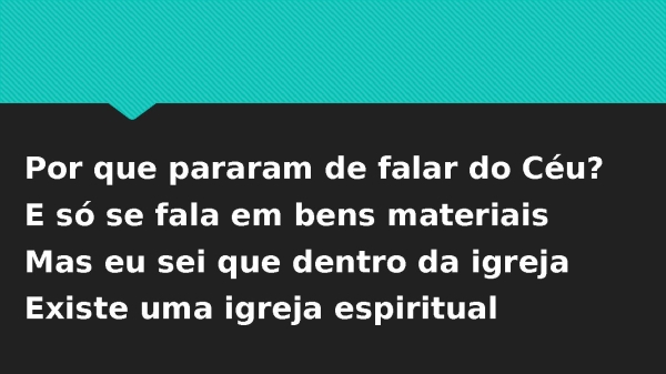 - Por que pararam de falar do Céu?E só se fala em bens materiaisMas eu sei que dentro da igrejaExiste uma igreja espiritual