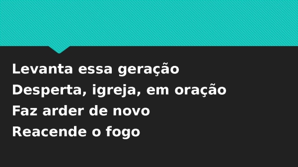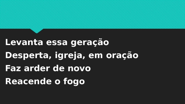 - Levanta essa geraçãoDesperta, igreja, em oraçãoFaz arder de novoReacende o fogo