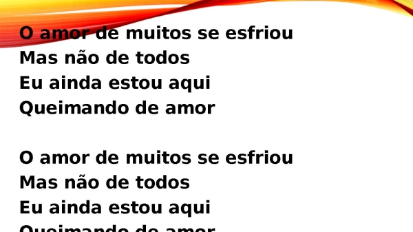 - O amor de muitos se esfriouMas não de todosEu ainda estou aquiQueimando de amorO amor de muitos se esfriouMas não de todosEu ainda estou aquiQueimando de amor