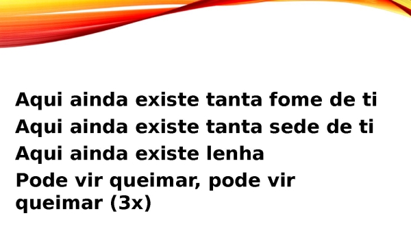 - E aqui ainda existe tanta fome de tiAqui ainda existe tanta sede de tiAqui ainda existe lenhaPode vir queimar, pode vir queimar(2x)