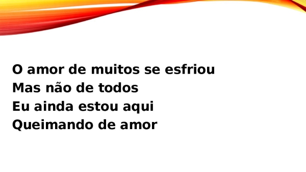 - O amor de muitos se esfriouMas não de todosEu ainda estou aquiQueimando de amor