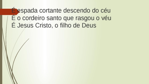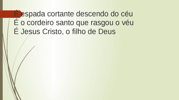 - É espada cortante descendo do céuÉ o cordeiro santo que rasgou o véuÉ Jesus Cristo, o filho de Deus