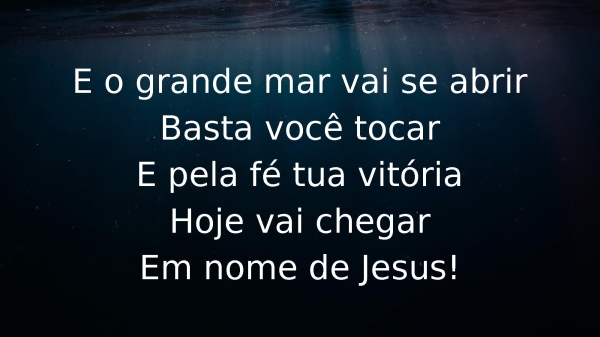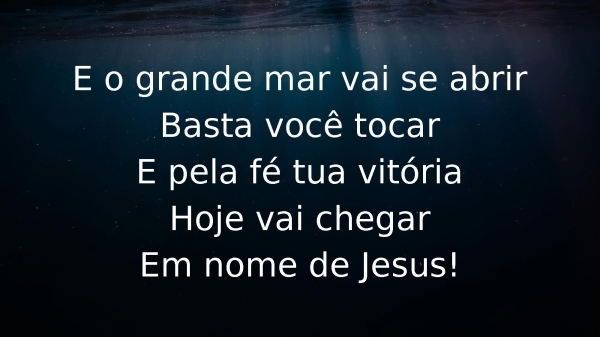 - E o grande mar vai se abrirBasta você tocarE pela fé tua vitóriaHoje vai chegarEm nome de Jesus!