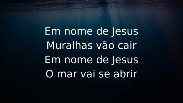 - Em nome de JesusMuralhas vão cairEm nome de JesusO mar vai se abrir