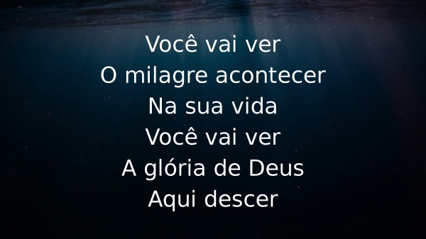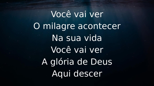- Você vai verO milagre acontecerNa sua vidaVocê vai verA glória de DeusAqui descer