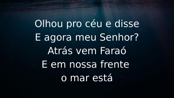 - Olhou pro céu e disseE agora meu Senhor?Atrás vem FaraóE em nossa frente o mar está