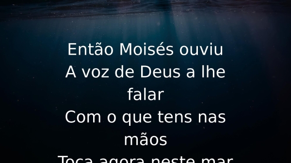 - Então Moisés ouviuA voz de Deus a lhe falarCom o que tens nas mãosToca agora neste mar
